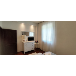 La casa ha 6 camere da letto disposte su 3 livelli:nel piano intermedio tra piano terra e primo piano, si trovano 2 camere da letto matrimoniali (entrambe dotate di raffrescatore di aria) e 1 camera con 1 letto a castello (con raffrescatore di aria); al 1° piano si trova 1 camera singola (con raffrescatore di aria) e terrazza privata; al 2° e ultimo piano (sottotetto) ci sono 1 stanza di passaggio con 1 letto singolo dalla quale si accede alla mansarda, fornita di 2 letti singoli;queste ultime due stanze (sottotetto) non dispongono di raffrescatore di aria.